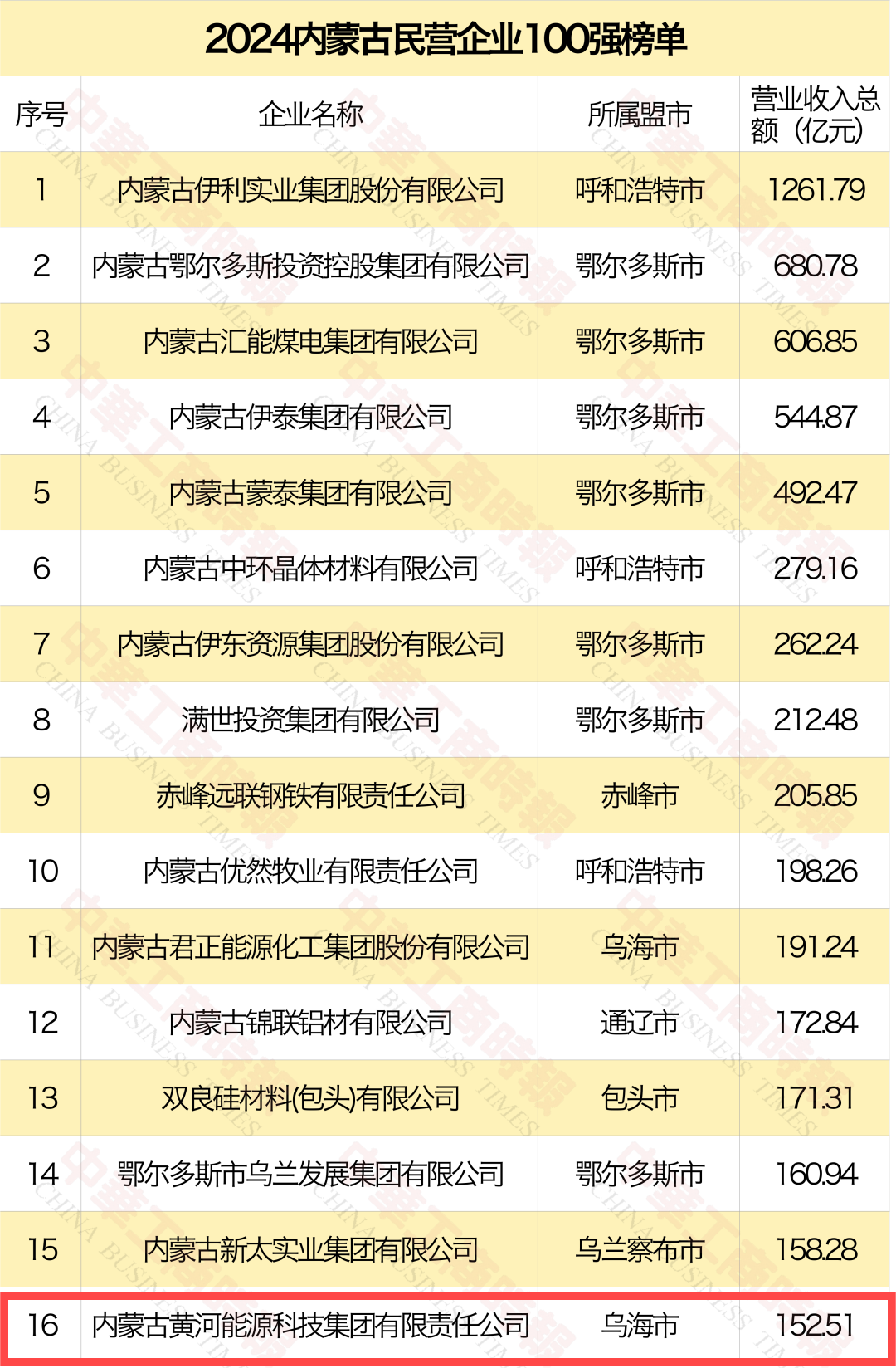 黃河集團再次入圍內蒙古自治區百強民營企業榜單