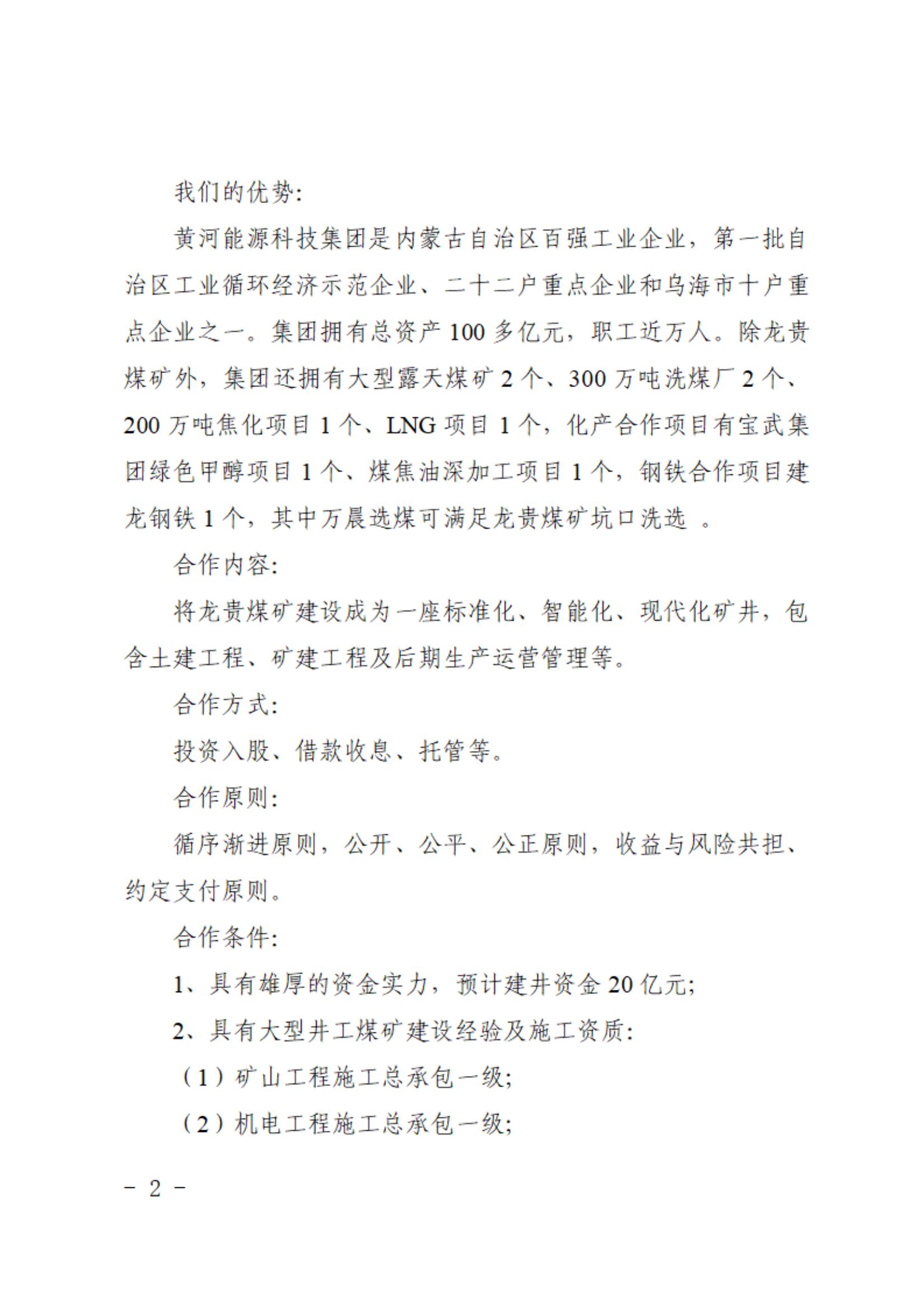 內(nèi)蒙古黃河能源科技集團有限責任公司關(guān)于所屬烏海市萬晨能源煤炭有限責任公司合作伙伴招募計劃