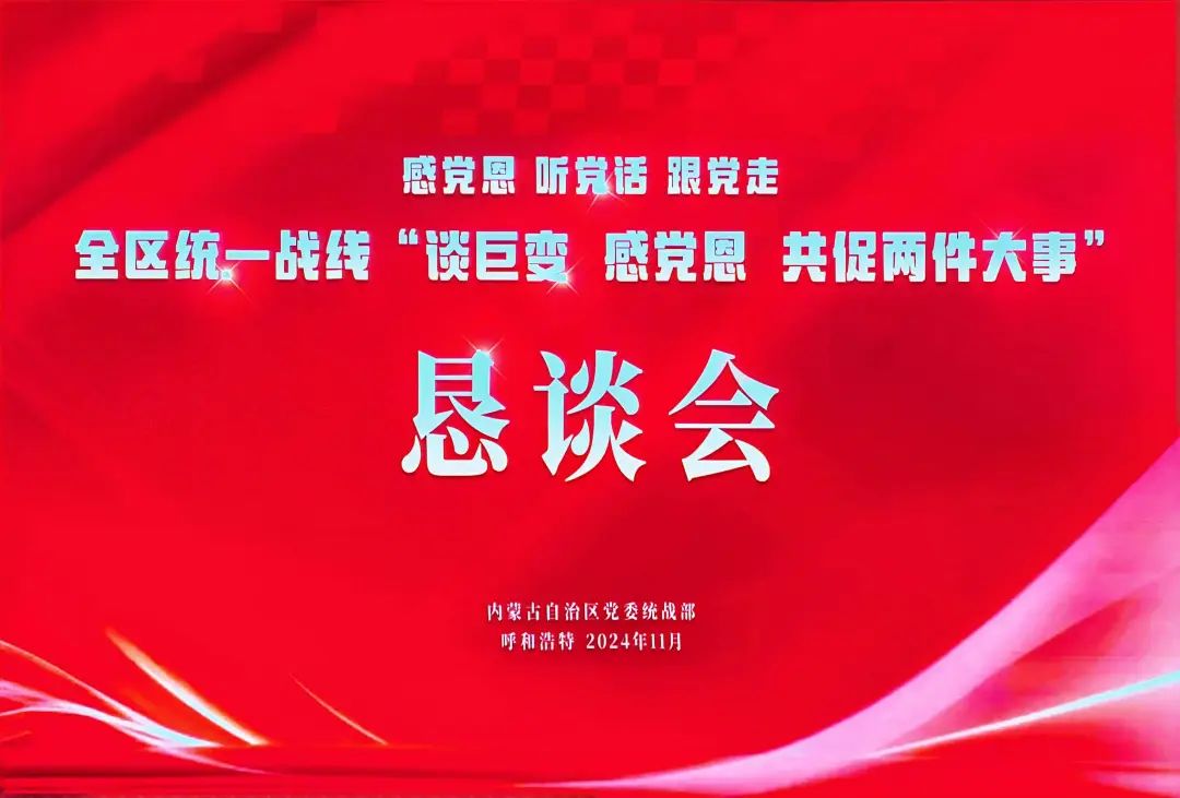 11月20日,內蒙古自治區黨委統戰部召開自治區統一戰線“談巨變、感黨恩、共促兩件大事”懇談會。自治區黨委常委、統戰部部長胡達古拉出席會議,內蒙古黃河集團作為唯一的民營企業代表參加懇談會。集團黨委副書記、行政總監李錦榮代表企業出席懇談會。